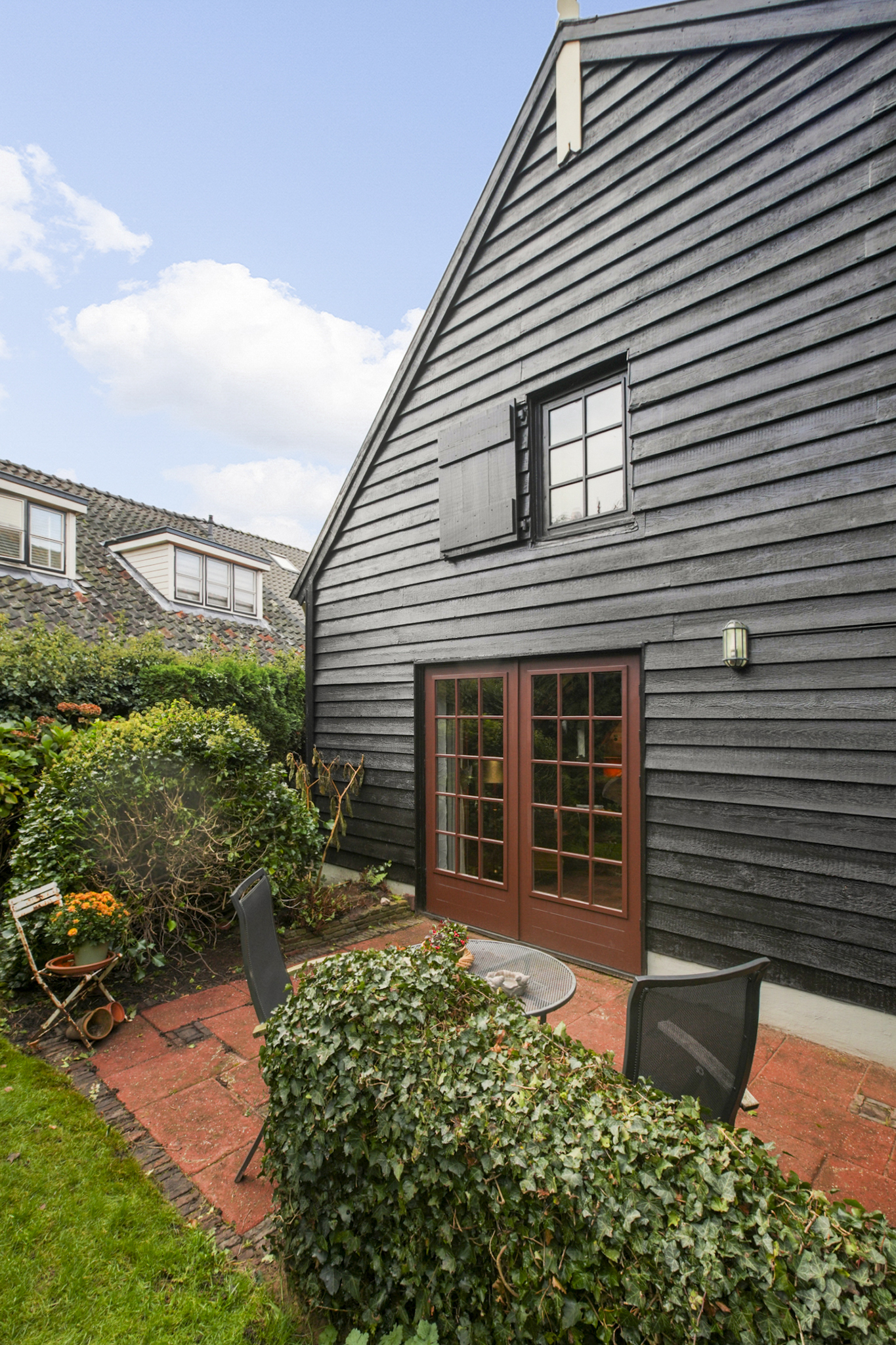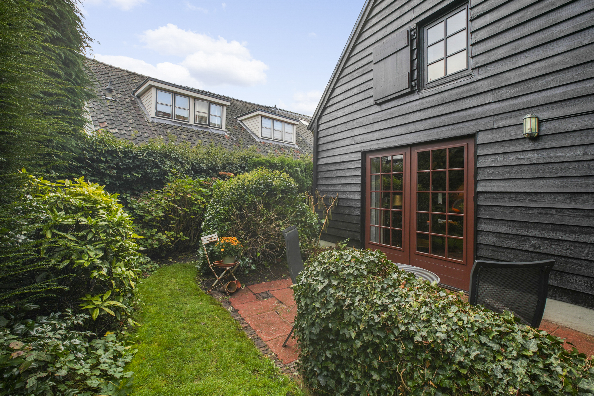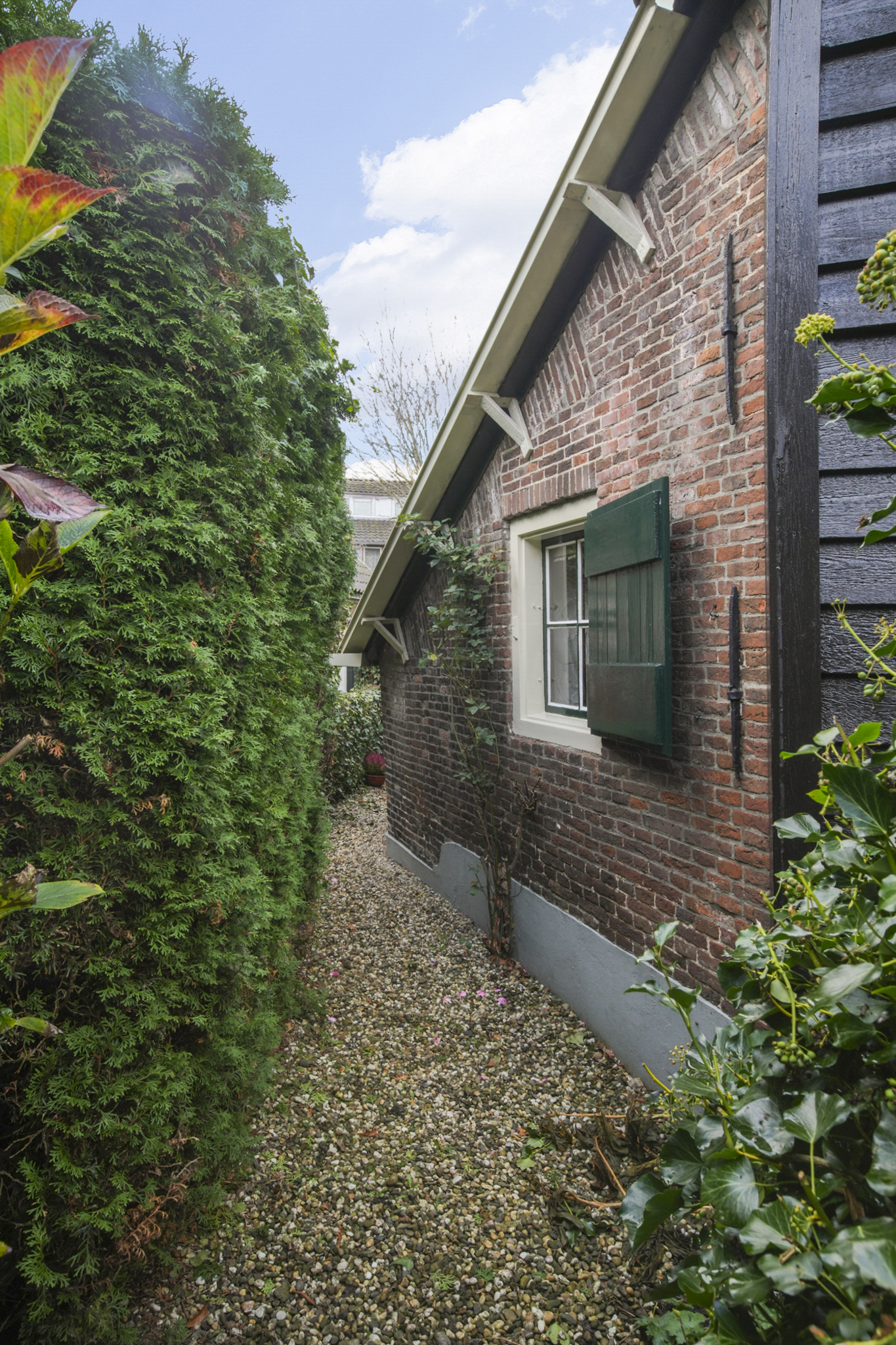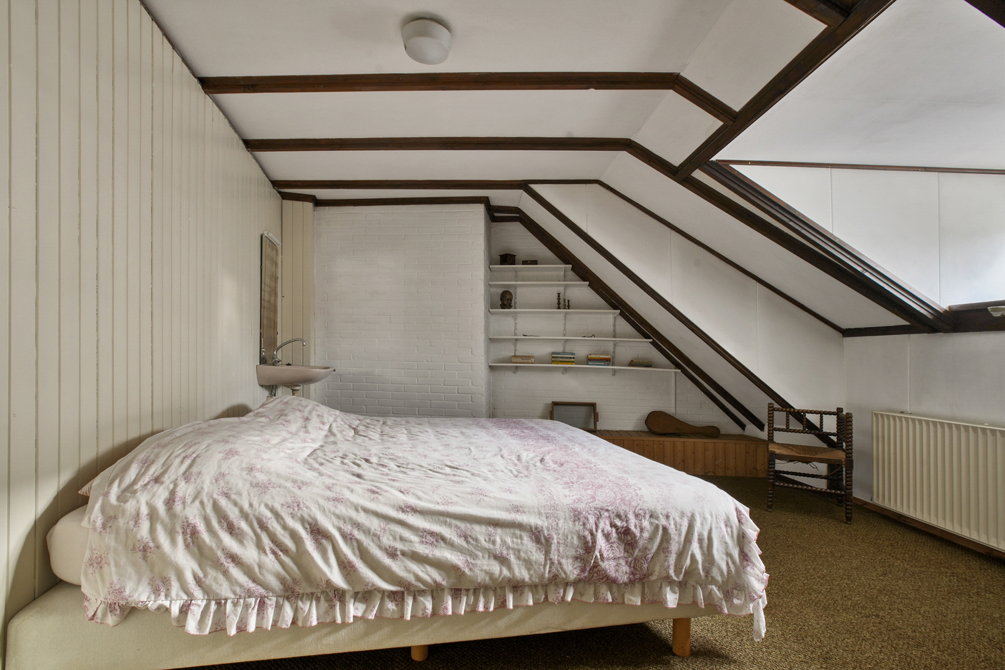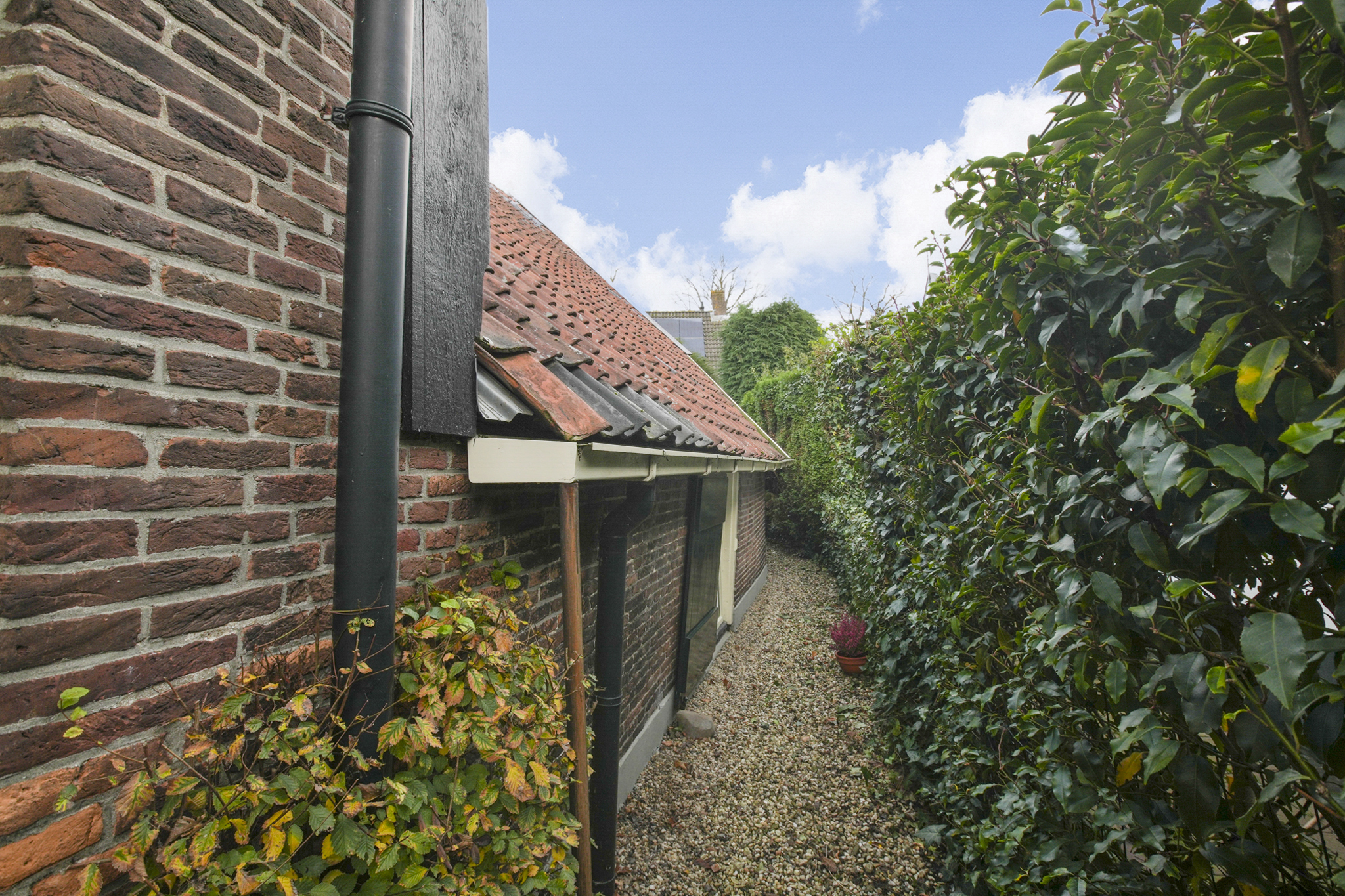 De vaste trap brengt u naar een open ruime overloop met een sfeervolle slaapkamer en ruimte voor een studeer of werkkamer. De aangrenzende kamer voor de CV-ruimte kan worden ingericht als walk-in-closet, de vierde slaapkamer met wastafel ligt aan de achterzijde. Op deze verdieping is extra bergruimte achter de knieschotten. De boerderij ligt aan een rustige steeg, waardoor u optimaal privacy en rust geniet. De zuid gerichte voortuin van ca. 280 m2 groot, biedt volop ruimte om te genieten van het buitenleven. Links van de entree bevindt zich een houten berging.