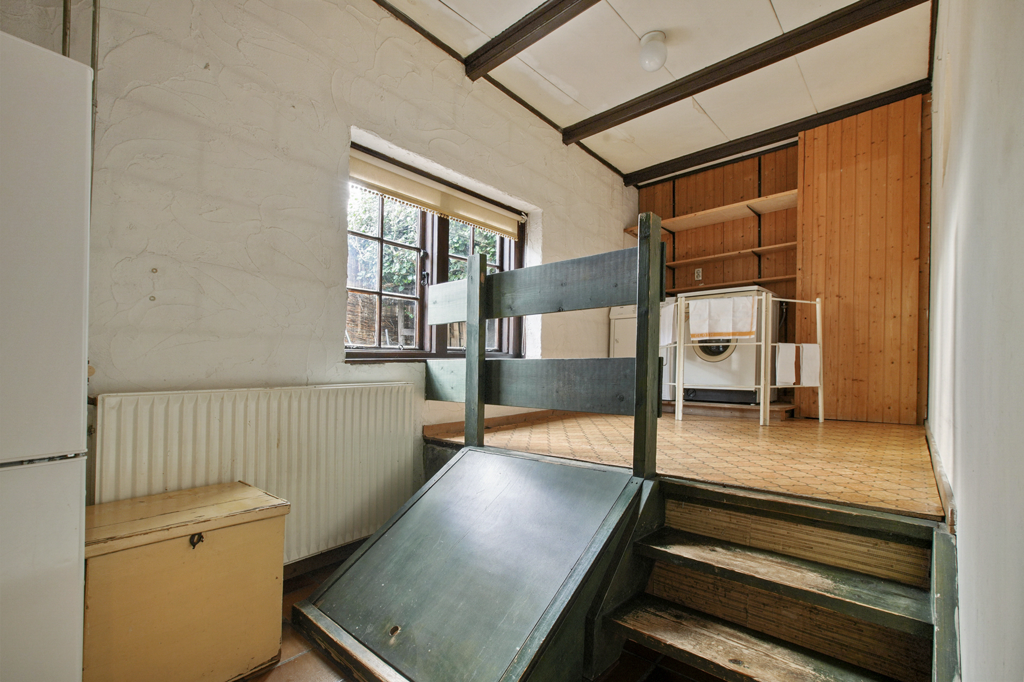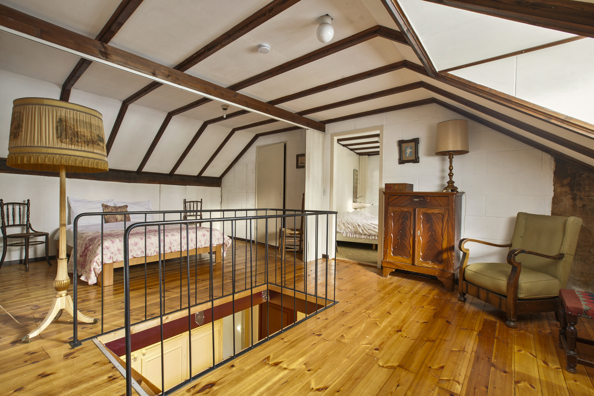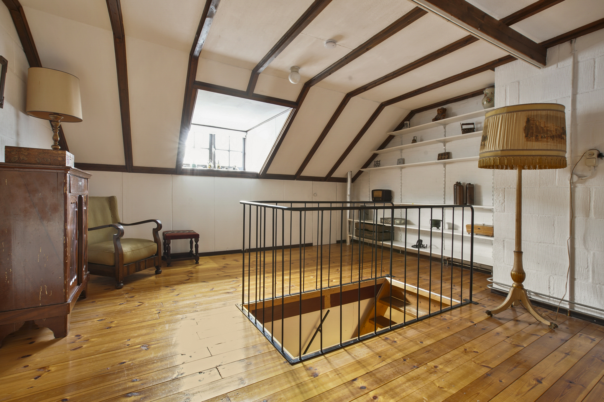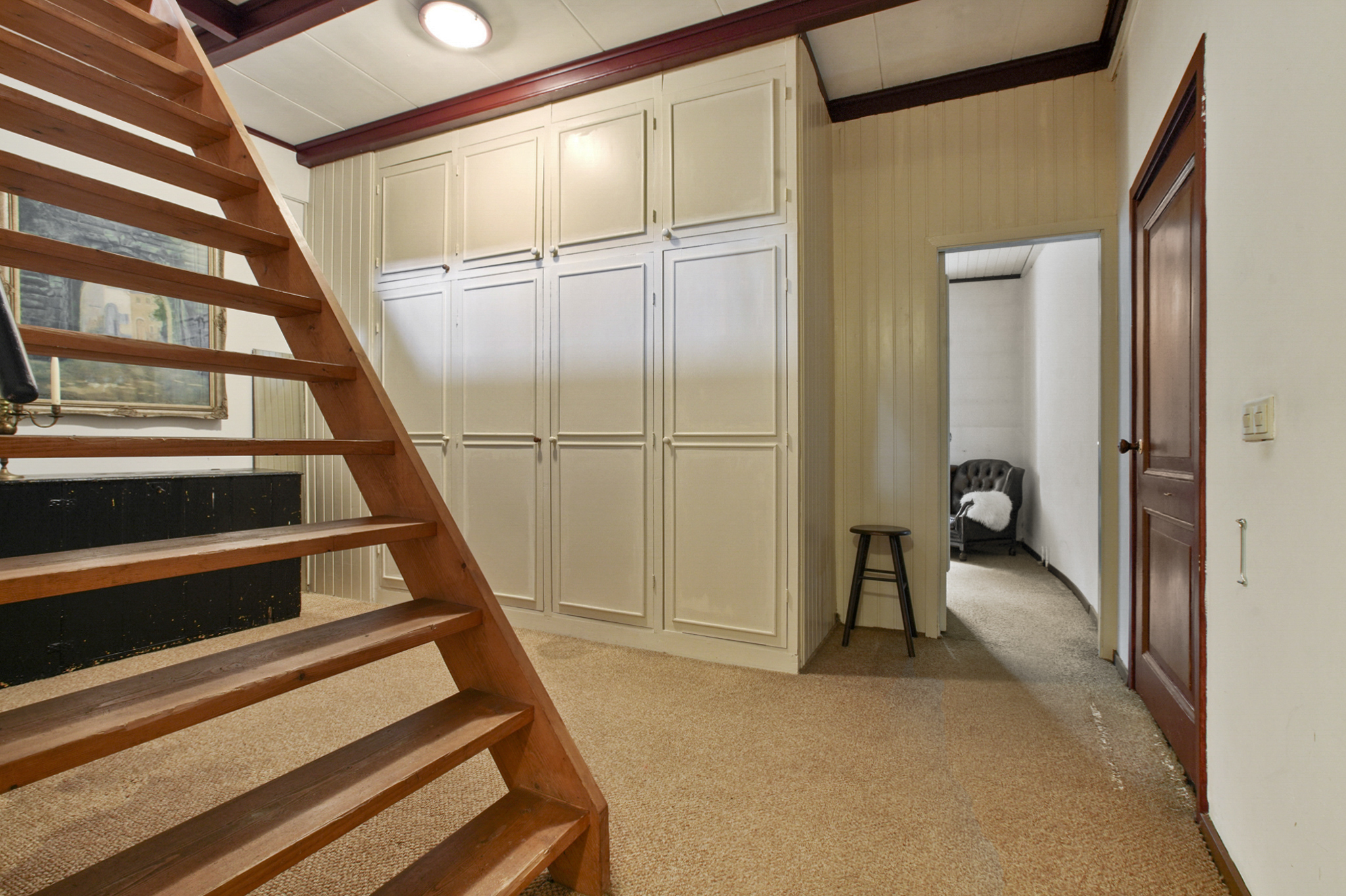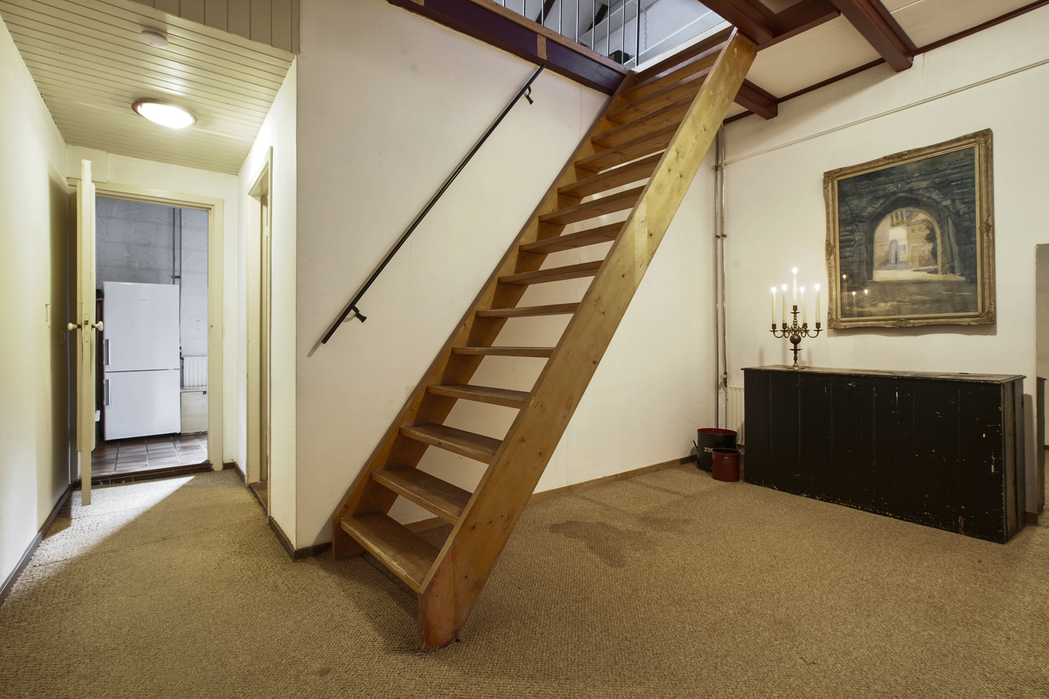 Via de vaste trap bereikt u de eerste verdieping: