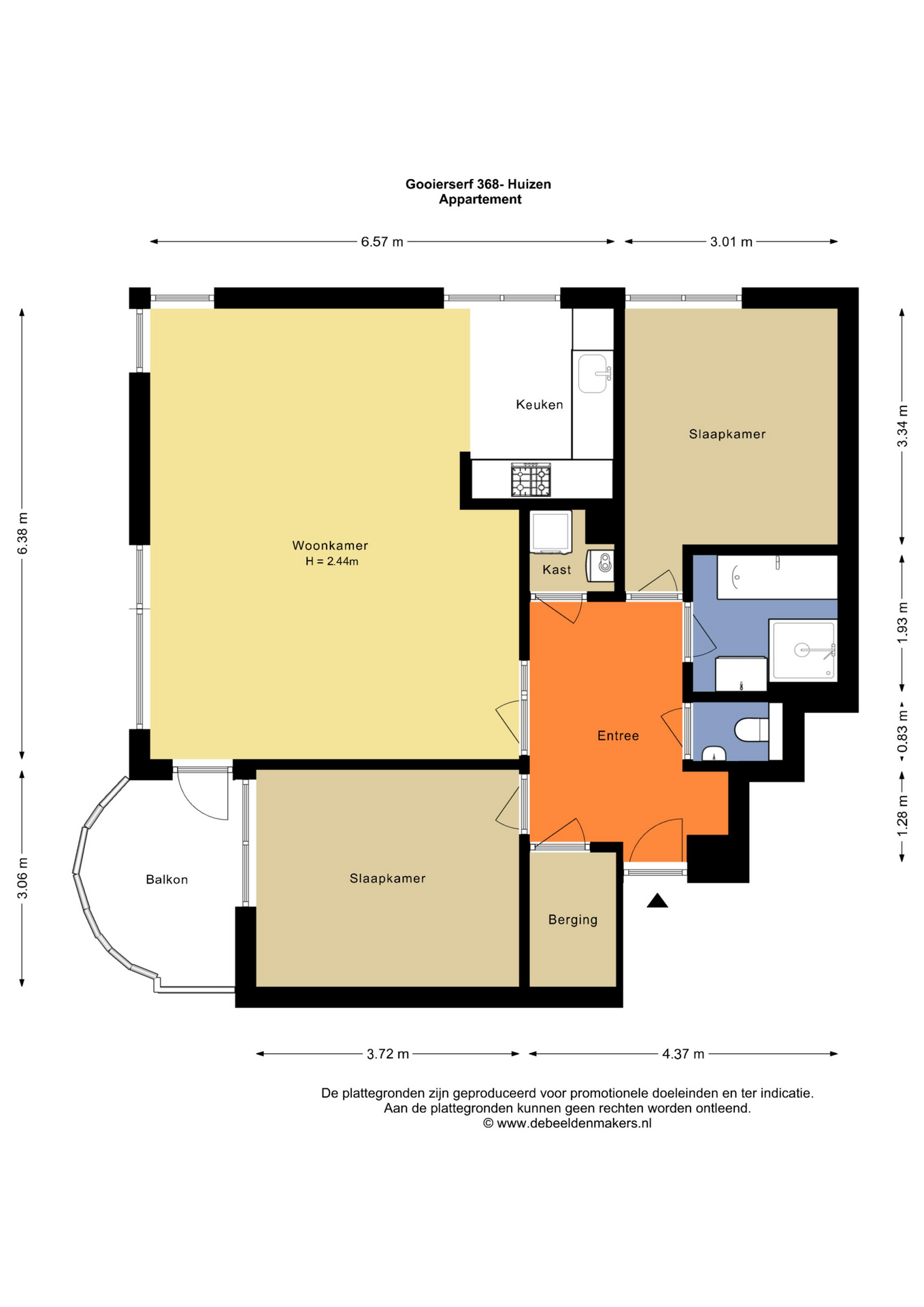 | Totaal aantal kamers | 3 waarvan 2 slaapkamers |