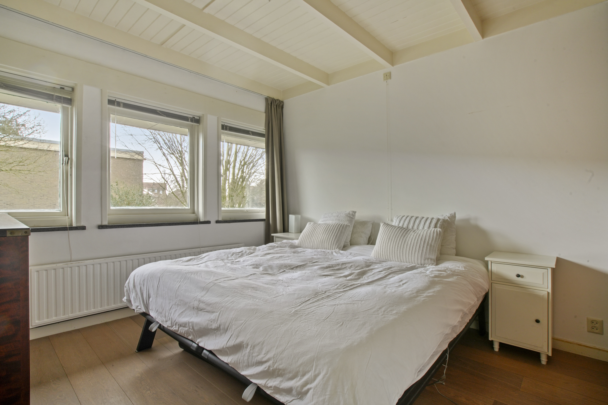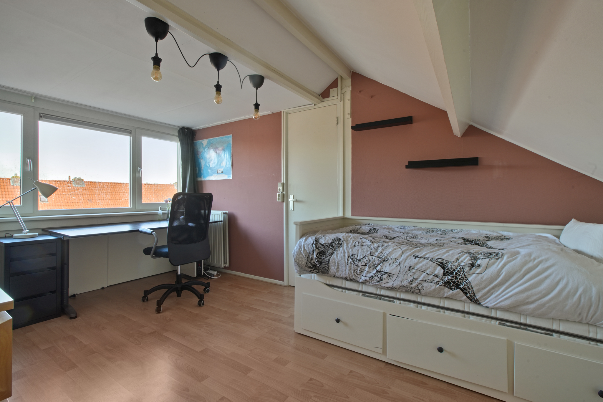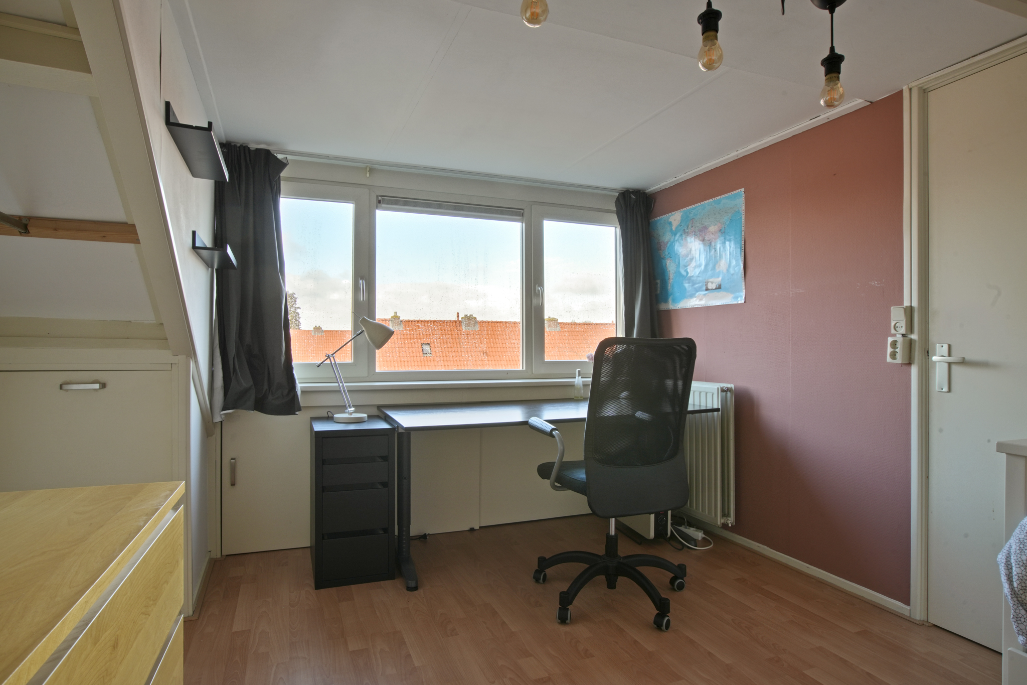 Zolderverdieping: Via een vaste trap bereikt u de voorzolder met dakraam en bergruimte. Aansluitend bevindt zich de vierde slaapkamer met dakkapel en extra bergruimte. Deze verdieping is afgewerkt met een laminaatvloer.