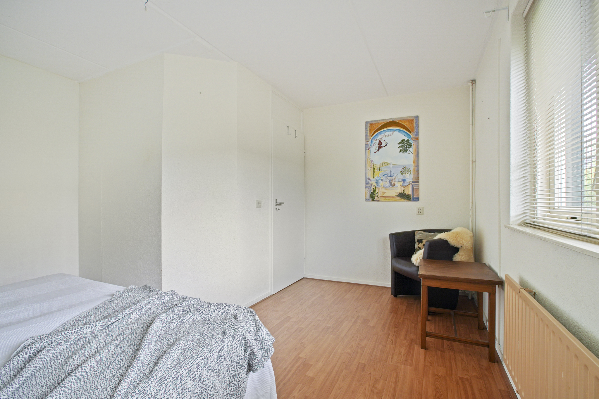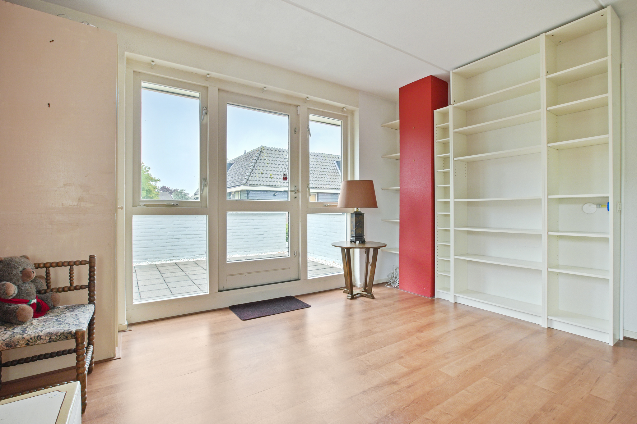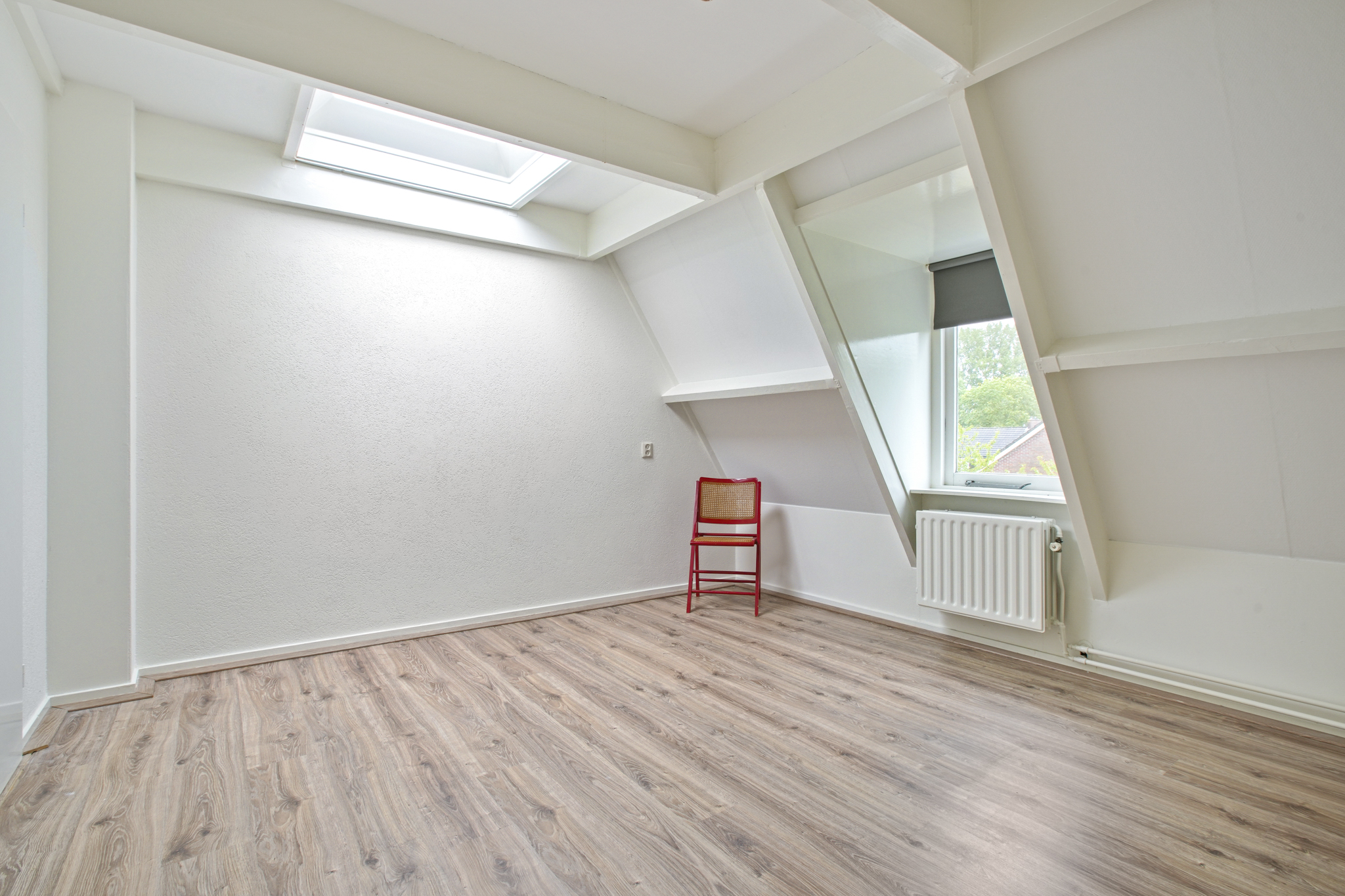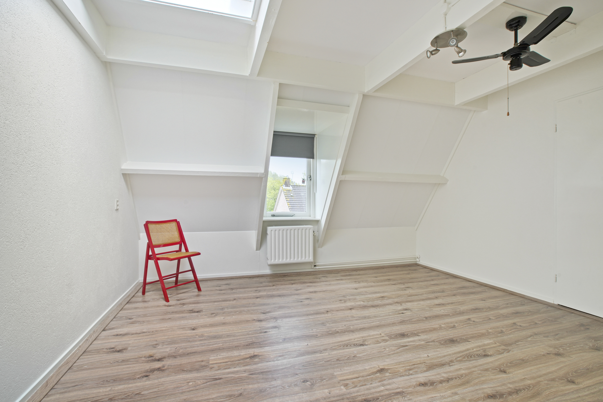 De overloop leidt naar drie slaapkamers, waarvan één met toegang tot een dakterras en één voorzien van een vaste kast. De ouderslaapkamer ligt aan de achterzijde. De badkamer beschikt over een ligbad met douche, een wastafelmeubel, een tweede toilet en een designradiator. Indeling tweede verdieping: Via de vaste trap bereikt u de tweede verdieping met overloop, berging met cv-installatie en twee royale slaapkamers. Eén van de kamers is voorzien van een wastafel en de ander van een ruime kast.
